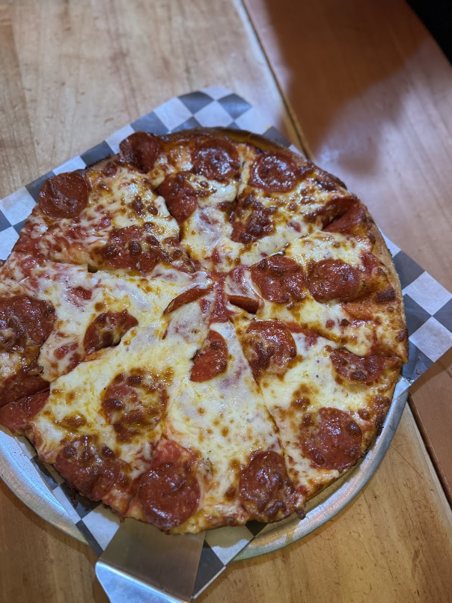 My family stopped here around 8 pm on Friday and had a great dinner. Very fair pricing. The pizza was mega comforting, really good cheese and crust. It was even good as leftovers over the next two days. The wings were a delicious classic with the Buffalo sauce.