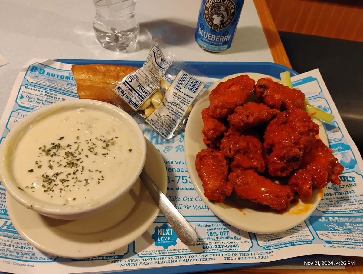 Chief’s Place is geared up for quick, easy, casual style dining. We placed our order from their extensive menu, seated ourselves and soon after was kindly summoned to retrieve our food for consumption. It was our first visit and we shared the large appetizer platter of deep fried chicken wings, mozzarella sticks, chicken fingers, stuffed mushrooms, onion rings, fries and jalapeño poppers. These delectable delights were served with three kinds of dipping sauces. We enjoyed our meal and recommend this dish. After our meal, Rob, an employee of eleven years explained that besides great food, Chief’s Place and its owner, George, has been a positive presence in the Penacook community since the 1990s. Well, the final word…. Although somewhat pricey, we recommend Chief’s for their good food, great selections and friendly service.