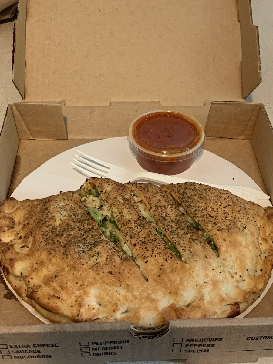 Phenomenal Calzone. Dare I say… one of the best calzones I’ve ever had. I got a small Chicken and Broccoli calzone, had the perfect amount of cheese and full of toppings. The calzone was as good as it was beautiful. Wife had a Crispy Chicken Salad and that was also very good.