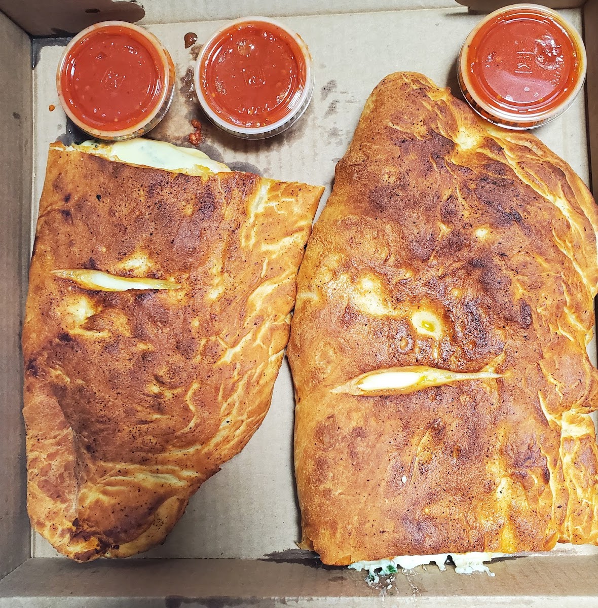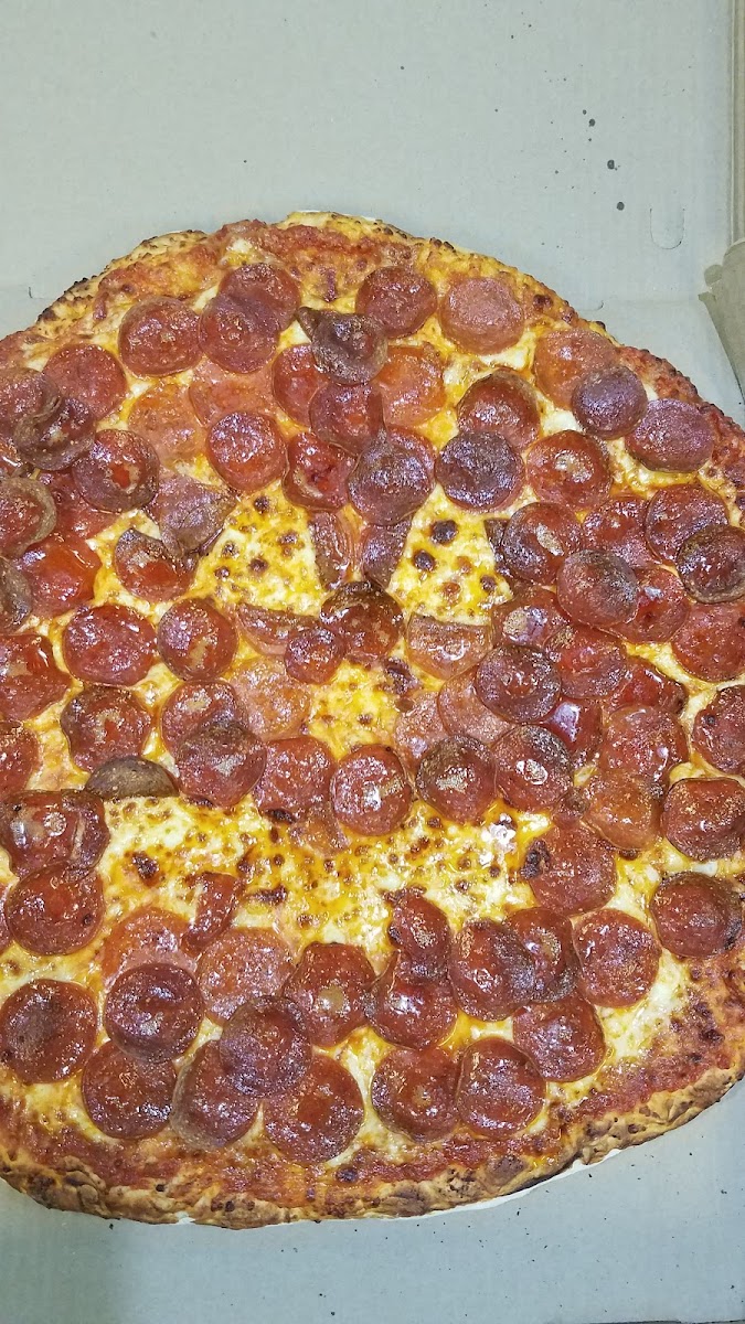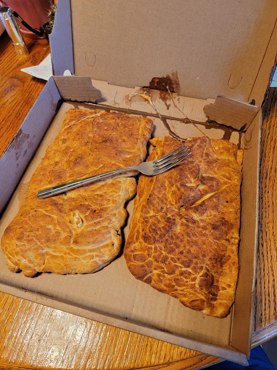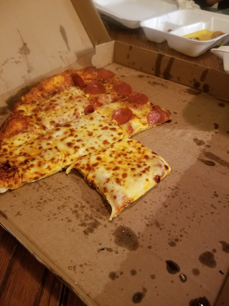 We just had Pizza with sweet sauce, mozzarella and pepperoni and Garlic Parmesan wings! Everything was excellent!! We are so full! Thankfully no burnt pizza (like every place else)