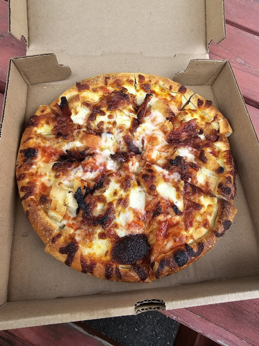 Ordered a 10 pie. BBQ chicken added bacon and extra cheese. The pie was alright. I don't think I got my extra cheese. The cost was high $18 and some change for a mediocre small pizza. I'm not sure if I will go back because of the high cost, unfortunately there is not much in this town for offerings of hot food.