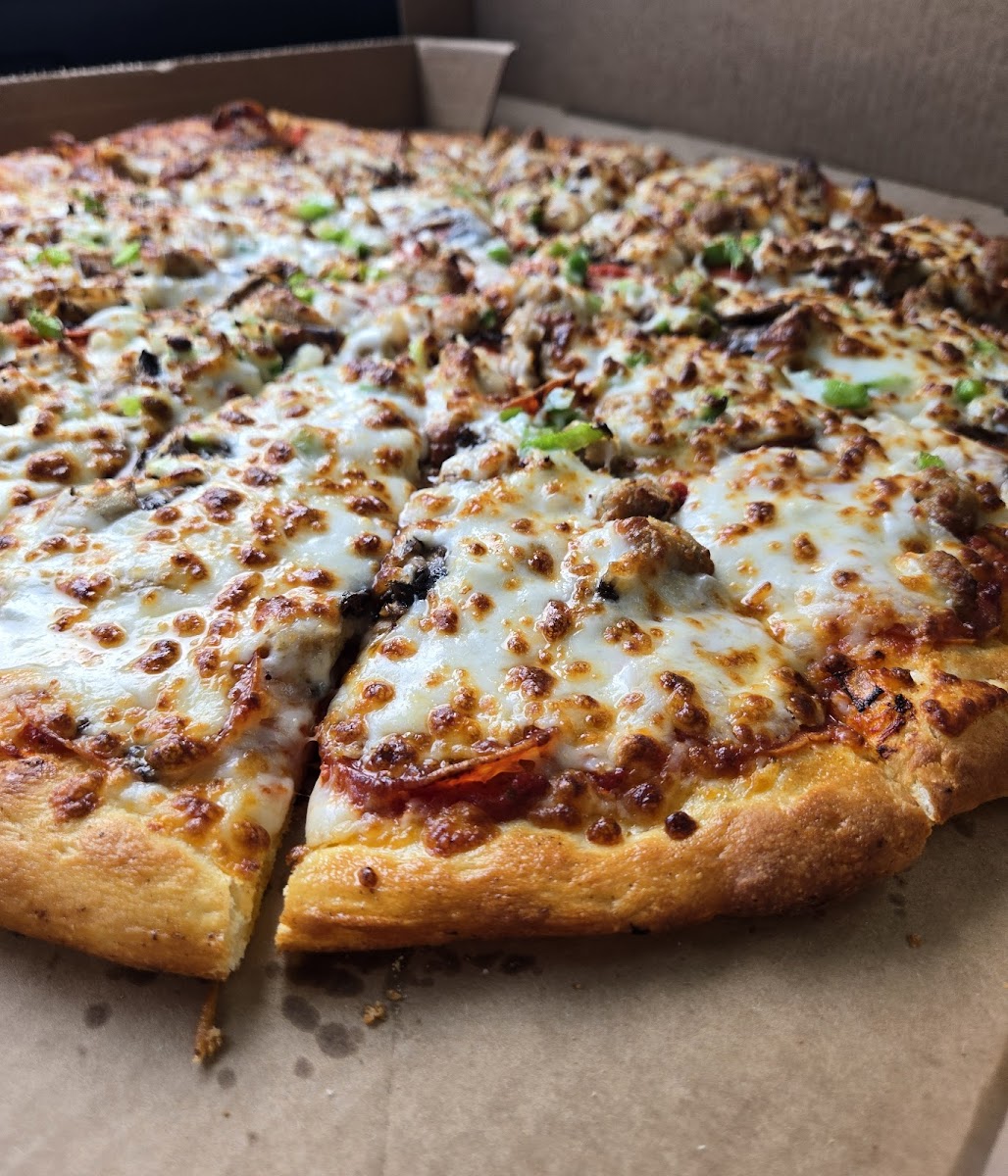 Freshly made pizza. The grand slam was a hit. Didn’t wait too long till order was ready. Delicious and definitely recommend!!!
