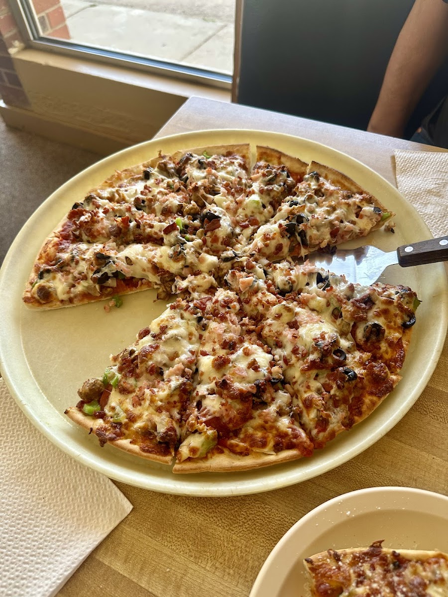 This is your classic small town pizza joint. It becomes different when you realize it, unlike most small town joints, has to compete with a chain pizza place. I personally day it does so fairly well. What strikes you different about this place is that it is different. The toppings are not the same you get everywhere else, they are just different and feel fresher. I always get the cauliflower crust which I now just prefer over normal crust. It is just a nice place with nice people and decent food. If you are in town and can it is a nice change from what you have found before.