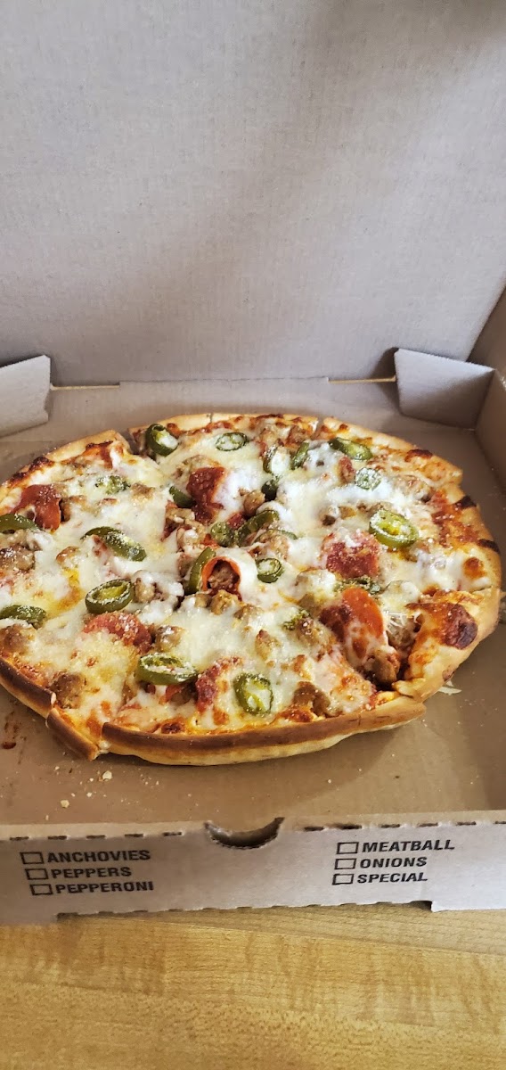 Awesome! I just wanted to get that out of the way first. "Algorithm" and all. Now this is a take out story so.. I'll try and keep it short.. lol! Drove past this place.. I don't know how many times and just didn’t notice it. Till one day.. I did. Tired of the... other establishments. I wanted to give back to the smaller independent shops out there, not realizing that I was going to be the one to be coming away extremely happy. (So much for short) I decided to call it in and ordered for take away. At first, noticed the lack of variety of wing flavors.. just have Buffalo... We'll come back to that. Rest of order goes well. Very friendly, but direct.. I like that. Now this place.. though just off a major road.. kinda hard to spot. But once you see it once, you won't miss it again. Now know that this was a Saturday and though crowd was low, parking.. a little tight, but got in there. I immediately noticed the dine in salad bar.. oh.. I gotta come back to try that. Picked up the pizza from the staff.. very friendly indeed. Now I get it home.. and oh boy! That pizza looked great, lots of toppings. The "All Meat", tasted every bit as it looked. The wings.. if your gonna do one flavor.. they did it right! Good size.. not too spicy hot, but full of flavor. Cheese sticks just as yummy! So to wrap up. I'm going back to try dine in, cause even though it was a drive and the food had cooled by the time I got home.. fresh, I bet, will be best! Thanks!
