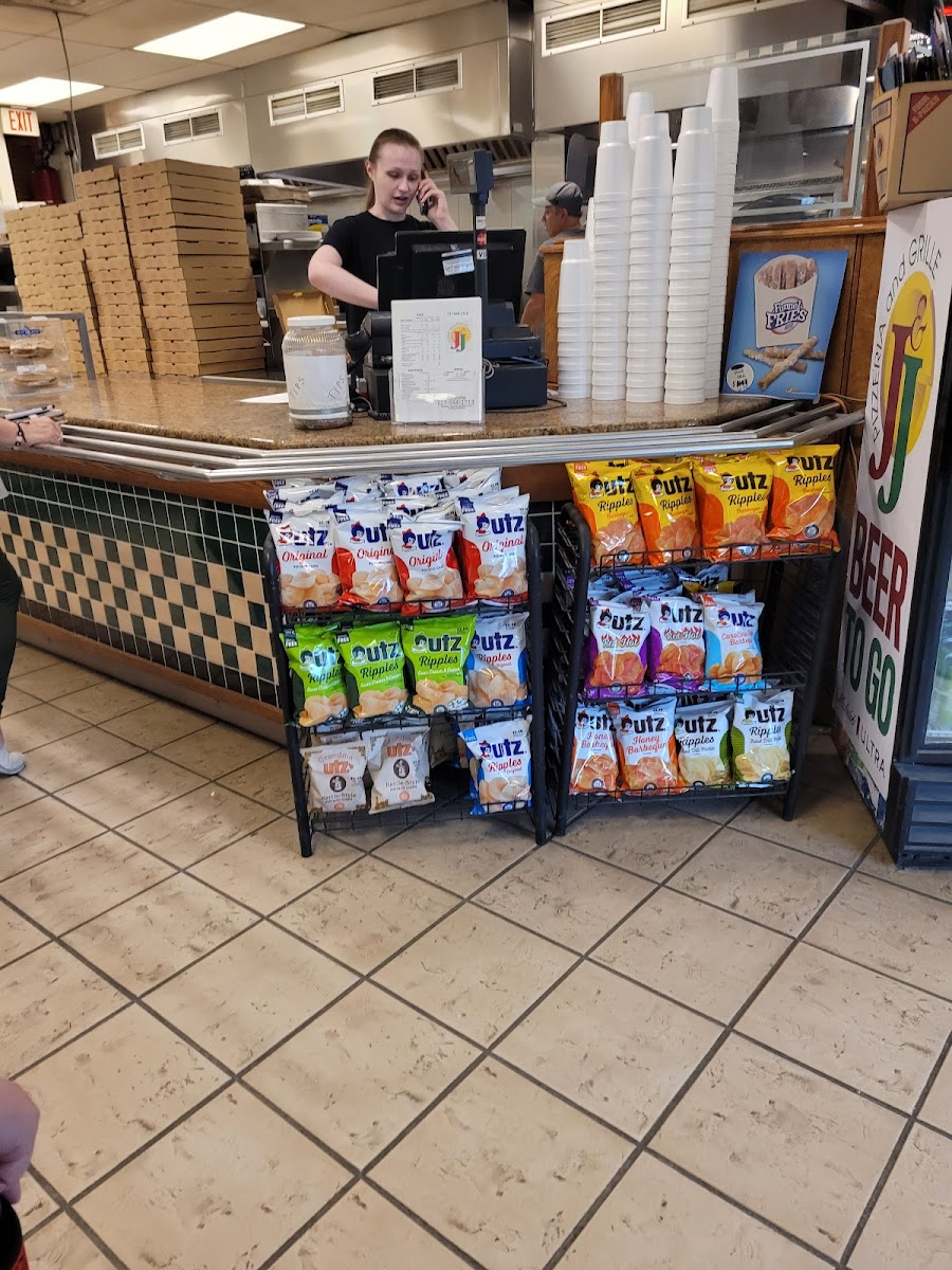 JJs pizza and salads are great. My personal favorite is their grilled chicken salad. Definitely the best around!