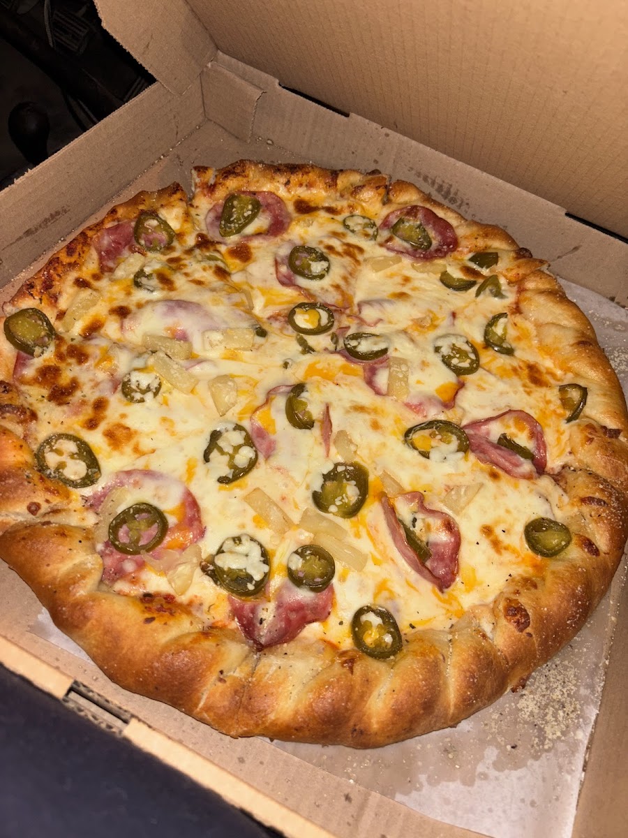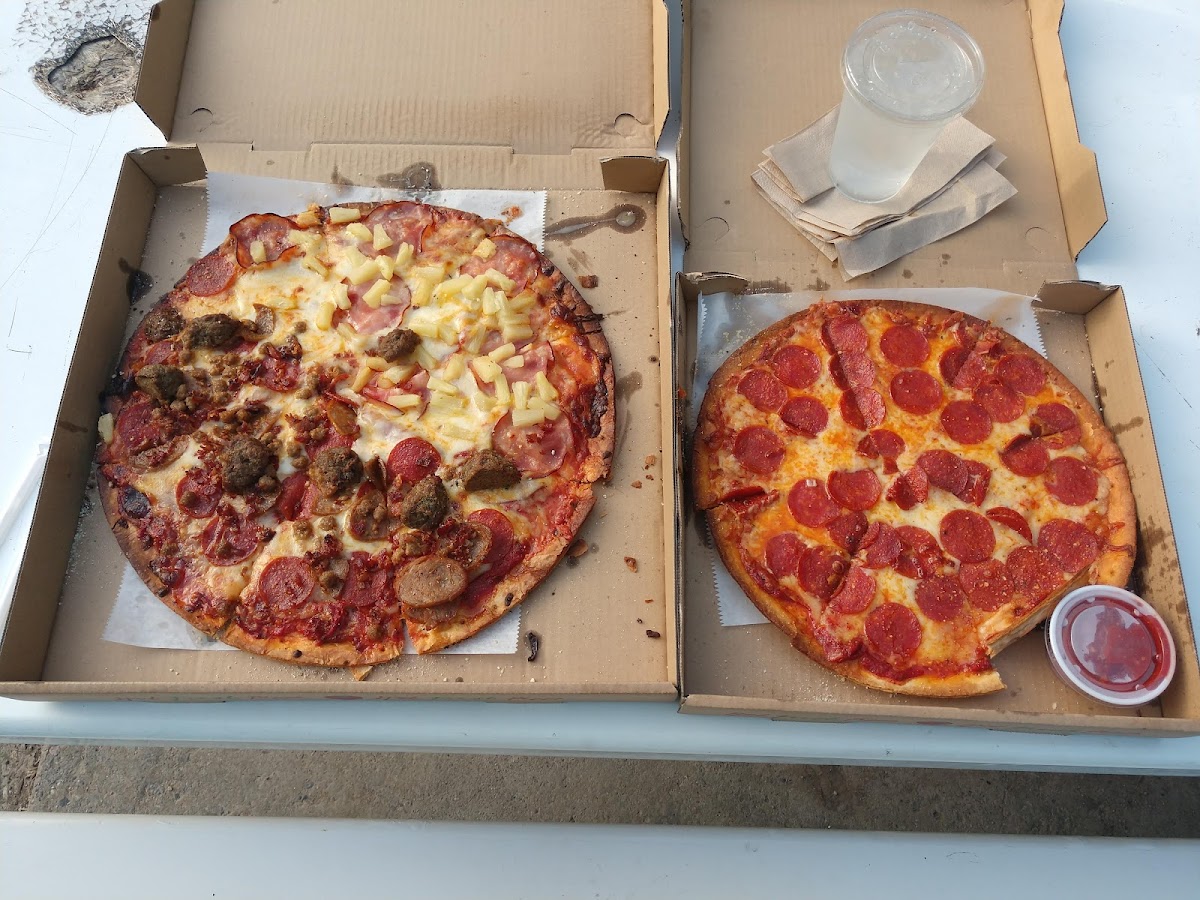 Finally after driving past for years we stopped and tried this place. It was delicious. You will not regret it. Friendly staff, very generous topping portions, and quality pizza. The left photo was half meat half Hawaiian (I forgot their names for them), the right photo is a single topping medium pepperoni. We got thing crust but they have regular as well. We ordered leaving Red Lodge and it was ready when we got there. Great job guys!