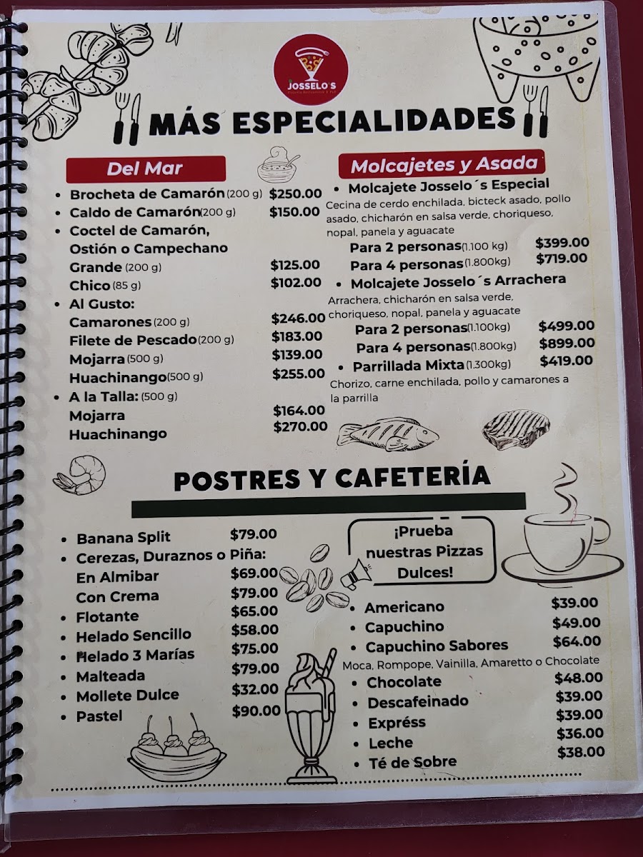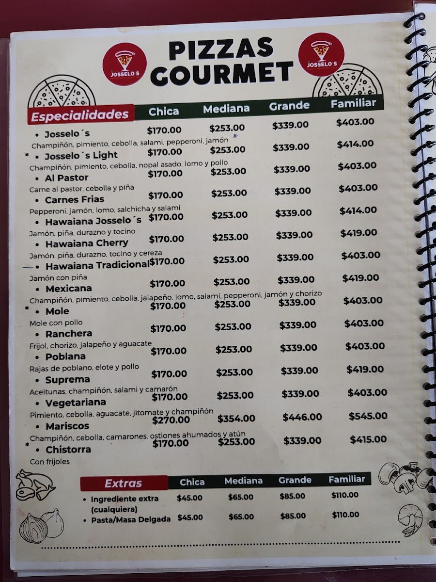 Pizza con base de pasta de tomate, queso mozzarella, champiñón, cebolla, camarones, ostiones ahumados y atún. pizzas con 8 rebanadas.