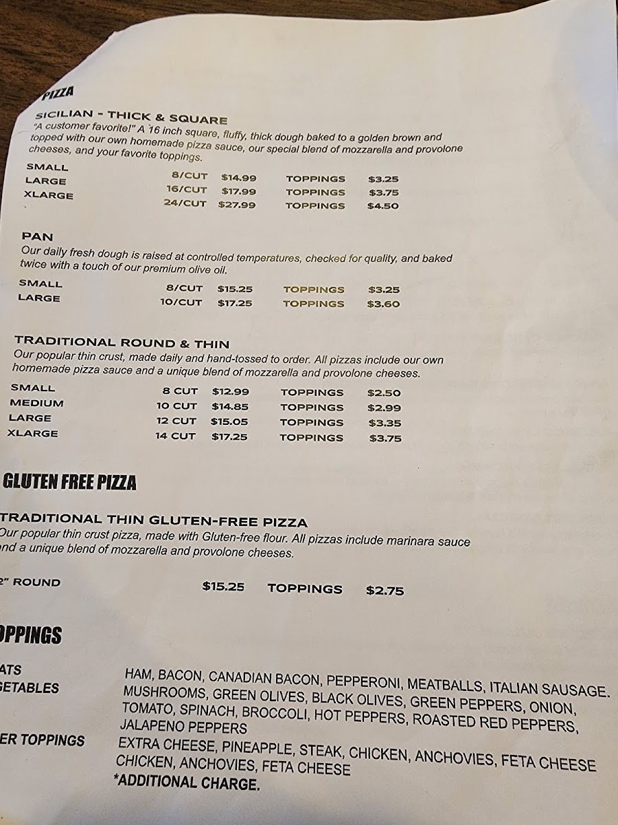 A slice of our Sicilian pizza sure to cure any Child’s appetite 1.00 each Topping up to a max 4 topping