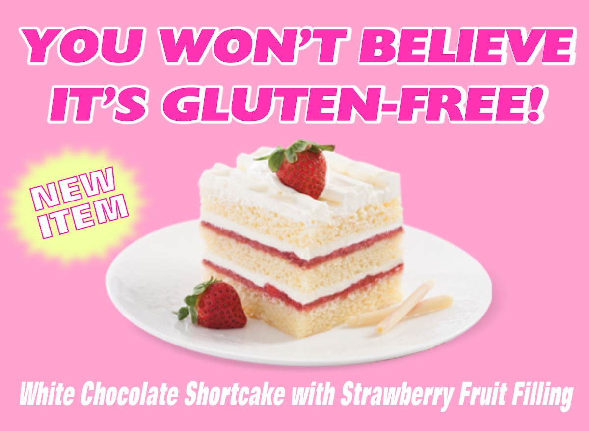 Made with Gluten Free ingredients, White Chocolate Shortcake with Strawberry Fruit Filling. You Won’t Believe It’s Gluten Free!