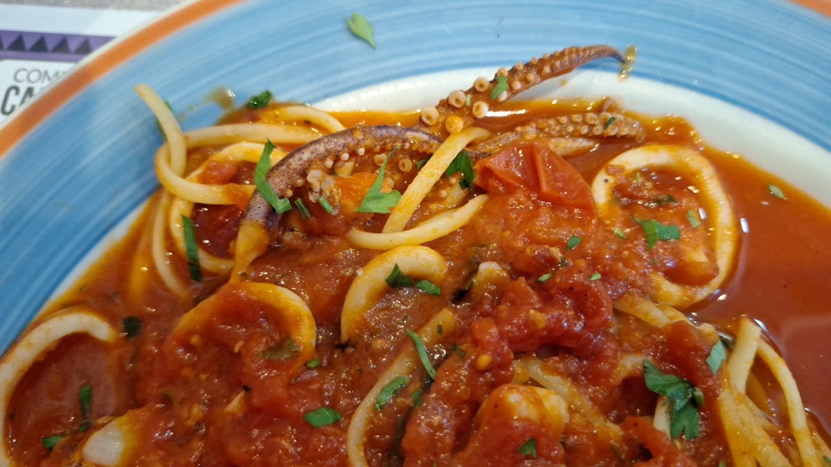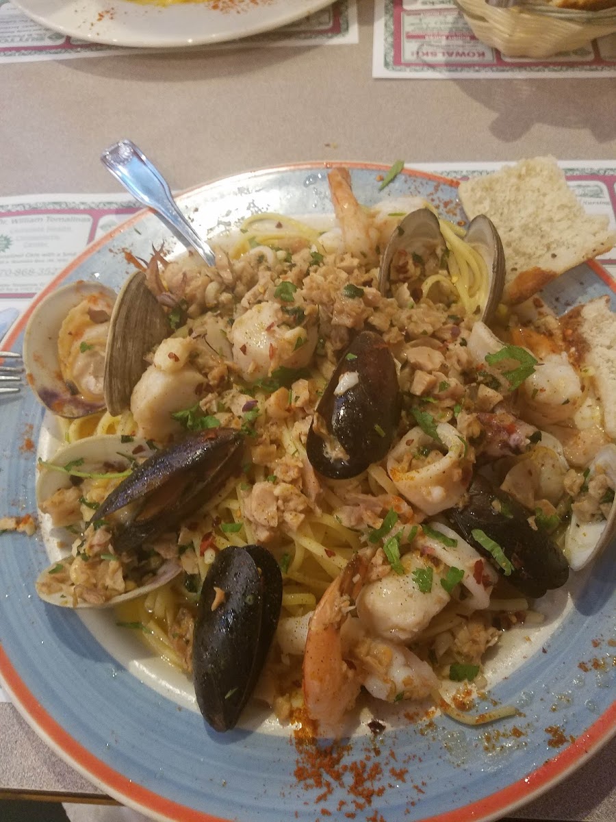 The server was so great and friendly. She answered questions and checked back on us frequently. Drink refills happened immediately. She was amazing. The food was incredible. My spouse ordered a pizza. I had a slice. Everything about it was delicious, the fresh mozzarella, sausage, pepperoni, etc. I tried the squid with linguini and marinara sauce. So good!! The marinara sauce comes with plum tomatoes and it is so delicious. The squid was cooked just right. There was a soup or salad option. I tried the soup...a chicken with pasta... So nice. Everything was great. We will be back.