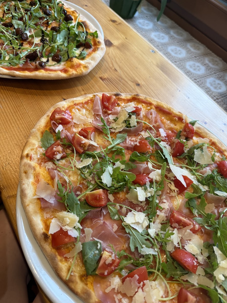 Great italian pizza. Great ingridients- top quality prosciutto, parmesan and tomatoes Same with other pizzas Just beware its not a fancy restaurant- just a small family spot with great pizza!