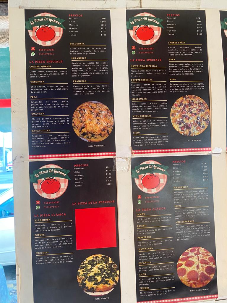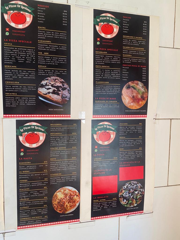 Mantequilla, poro, crema, queso crema, queso azul, queso gouda, queso parmesano y salsa de jitomate.