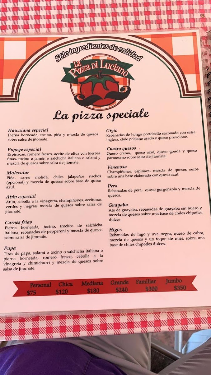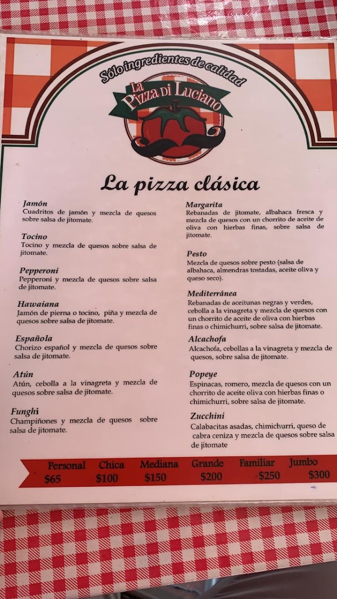 Jamón de pierna o tocino, piña y mezcla de quesos sobre salsa de jitomate.