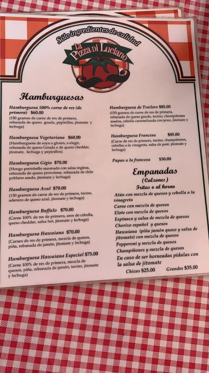 (Carne 100% de res de primera, mezcla de quesos, piña, rebanada de jamón, tocino, jitomate y lechuga)