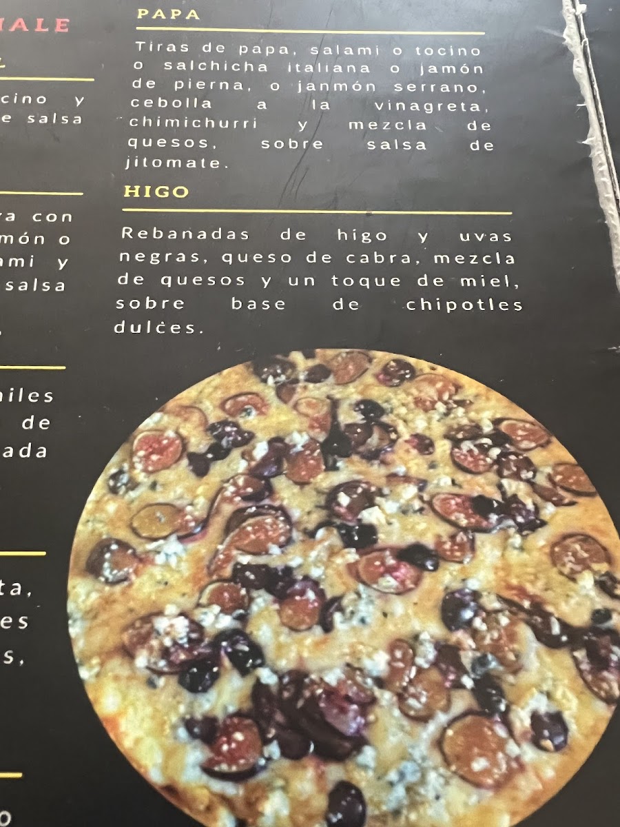 Mezcla de lechugas, rebanadas de higo, queso de cabra y aderezo de chipotles dulces, miel, vinagre de vino tinto y jeréz.