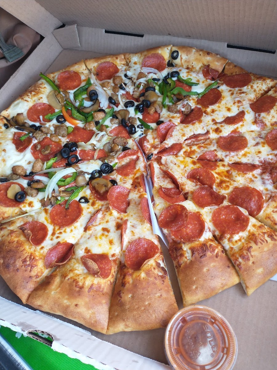 I think the pizza is so tasty. Better than the average chain pizzeria. Highly recommend for the fast service.