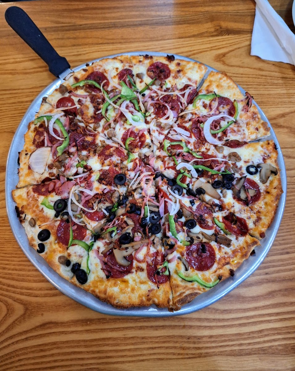From the moment we arrived, we were greeted by a friendly staff. Our waitress was so kind and also efficient. The salad bar was great and our food came out fast. The pepperoni pizza was so good! And the cannolis are to die for! I can’t wait to go back. Best pizza in town!