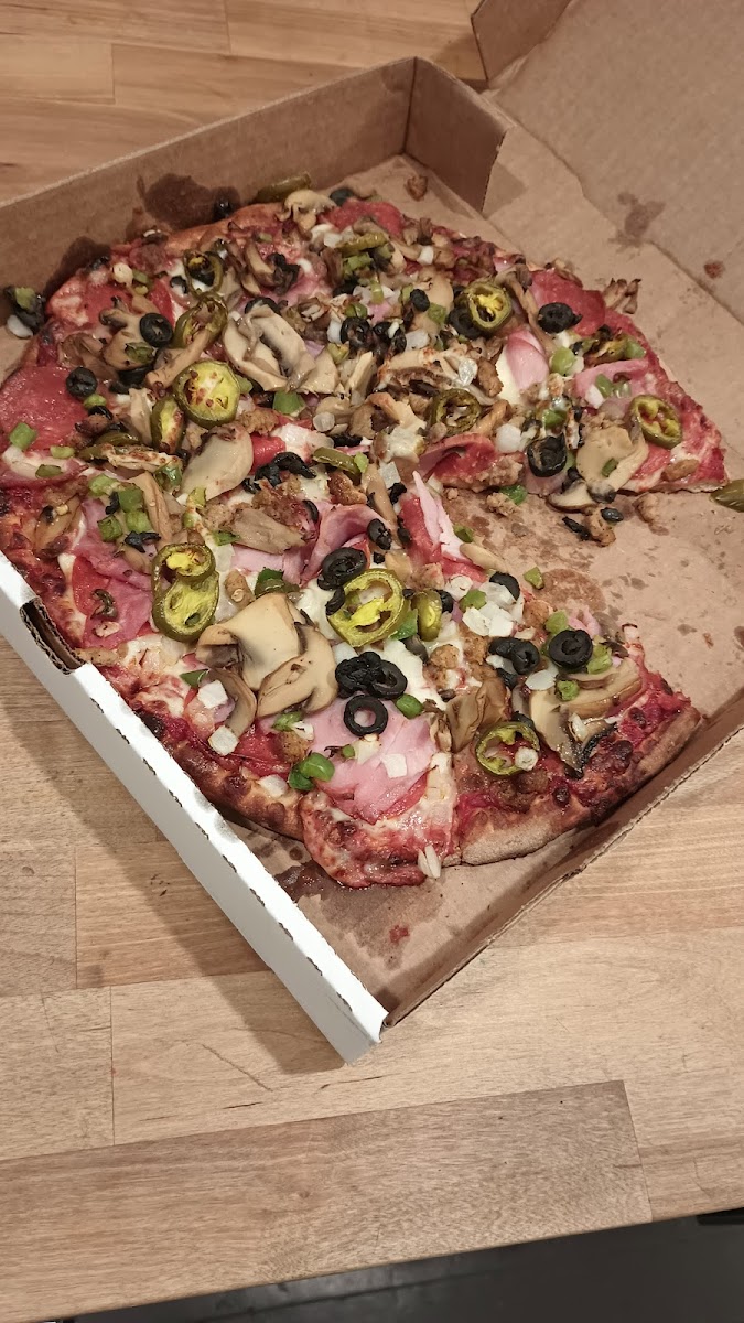 Omgosh such great pizza and delivery! Delicious and the extra large are huge! Deluxe is LOADED! Definitely will be calling again!!