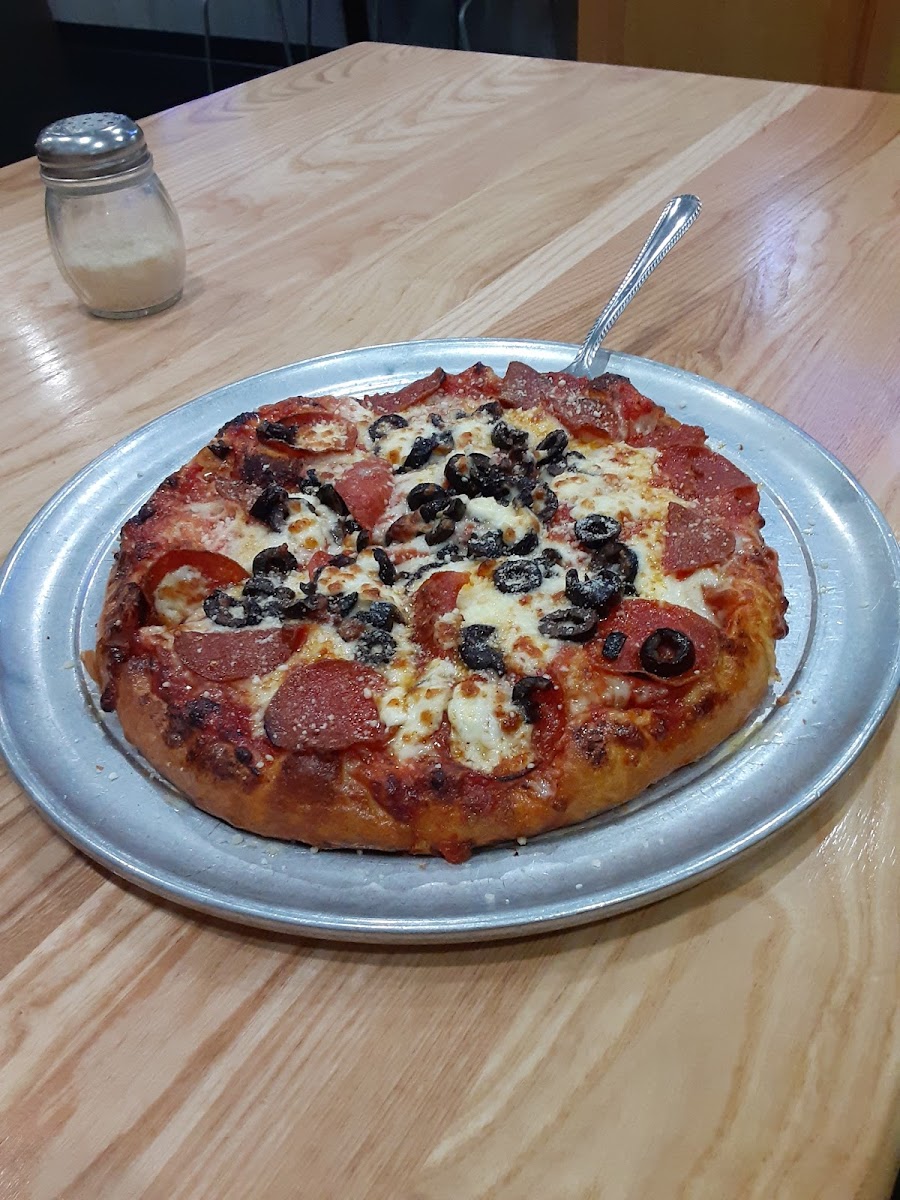 I had excellent pizza here. They make their own crust from scratch and they're own sauce too. Service was great and everyone was nice. I tried 4 other pizza places in the area and this was the best one by far.