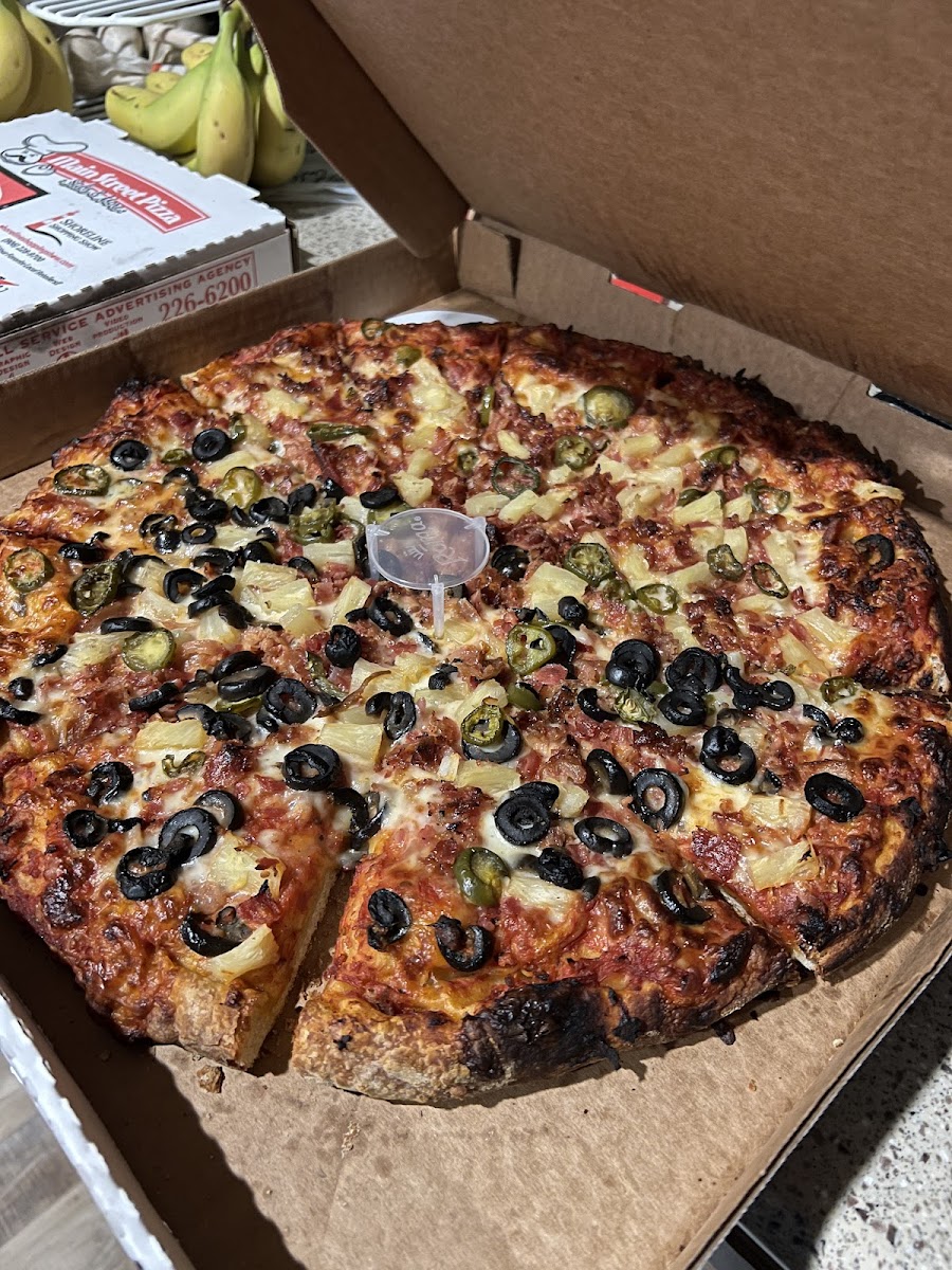 Pizza was dankkkk!!!! and almost just how I like it, well done and loaded with goodness!!! Cheese bread was delicious!! Service didn’t come to me right away when I walked in and I definitely noticed that. The place (machine/oven, floors) could look cleaner inside personally but I’ve worked at a pizza place so I know how it is. Pizza was worth it and I’ll definitely be back!