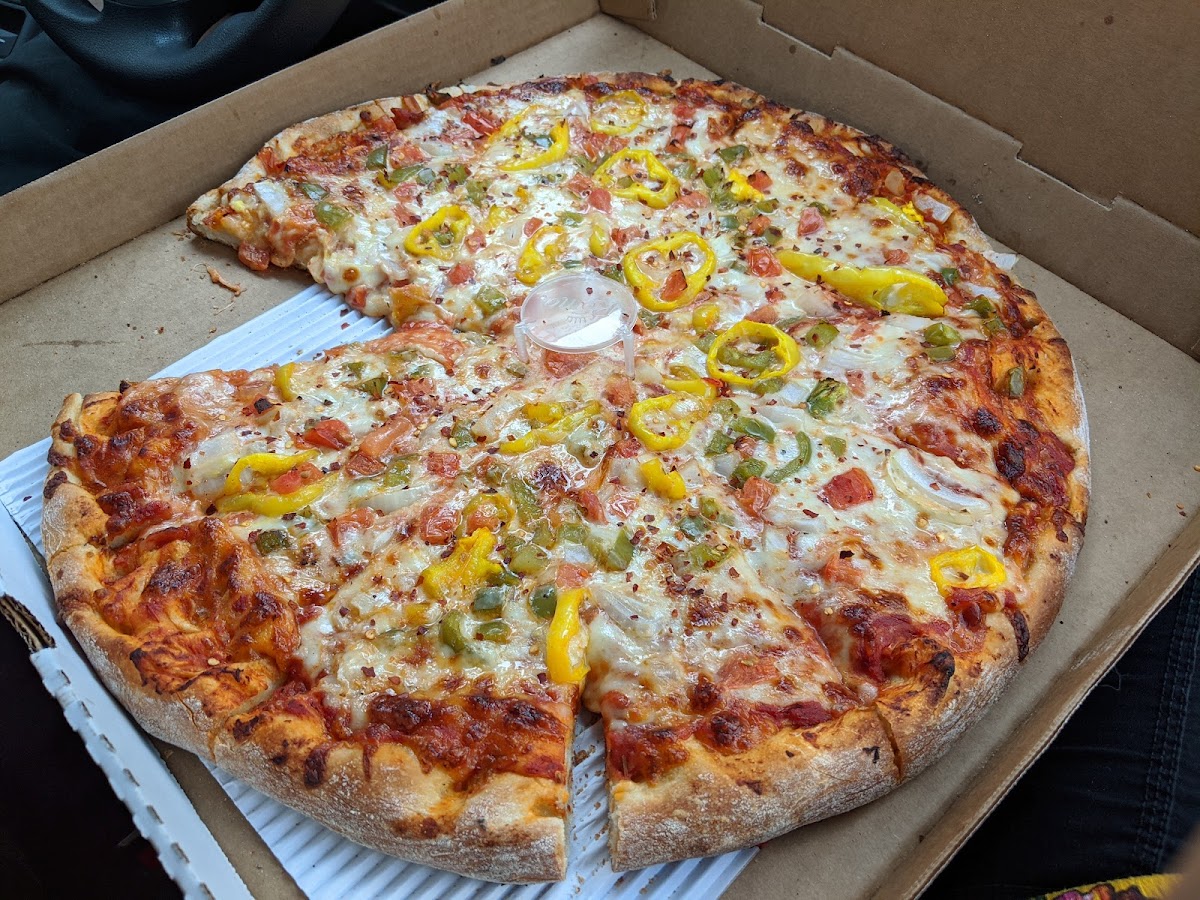 This pizza was outstanding! We got the speciality pizza and we loved it! We called our order in and went and picked it up since they currently aren't delivering. It only took about 20 minutes for it to be ready, and it was dinner time on Saturday night, so we're were fed very quickly! We took our pizza back to our hotel. The staff was kind enough to offer is plates and red pepper flakes as well! This pizza was so full of toppings! The crust was fluffy and crisp! The cheese was so melty! And the toppings! So many! And so good! My husband and I really enjoyed our dinner! I would gladly eat here again and highly recommend it if you are in the area! Next time I want to try one of their oven toasted subs!