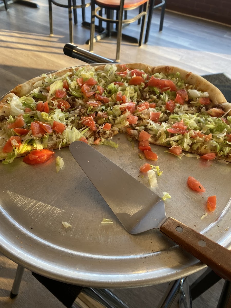 The pizza taste like the New York style pizza really good I ordered there taco pizza with there chicken fingers and French fries