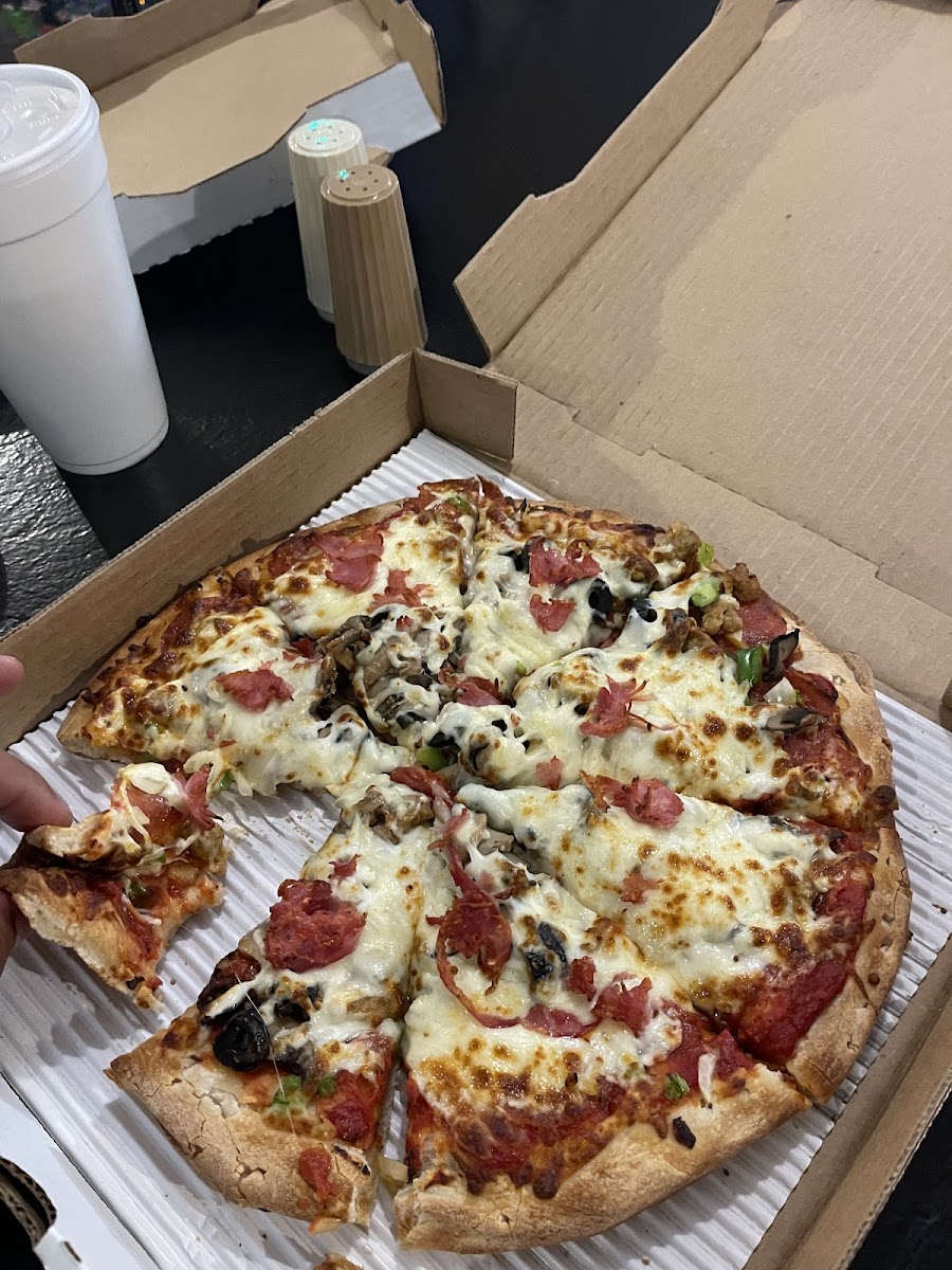 AWESOME SERVICE!! SOME OF THE SWEETEST PEOPLE!! NICE AND CLEAN! YOU CAN SEE THEY USE FRESH INGREDIENTS! CUT EVERYTHING BY HAND! EVERYONE USED GLOVES. I ATE MY PIZZA BEFORE WITHOUT TAKING A PICTURE SO IM SORRY FOR THAT BUT IT LOOK DELICIOUS!!! I COULDN’T WAIT !! THANK YOU! ILL BE BACK !! OHHH AND THE PIZZA CRUST WAS SOOOOOO FRESH!!! I LEFT 10 MINUTES AGO AND IM STILL THINKING ABOUT IT!!