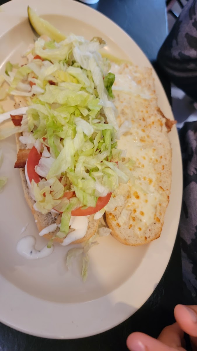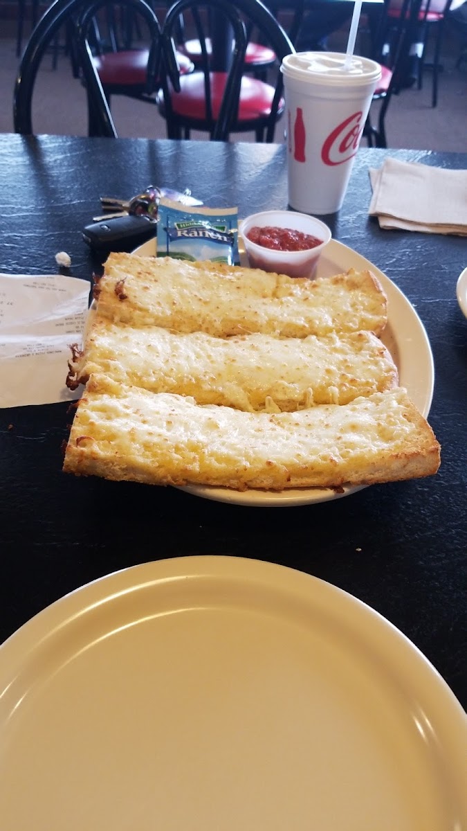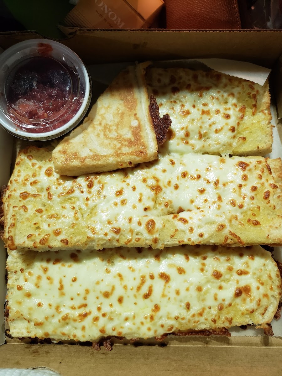 Really good pizza and garlic bread with cheese! Nice simple dark sauce not over powering, delicious cheese, and loveee the bacon strip topping! Will be back to try the subs!