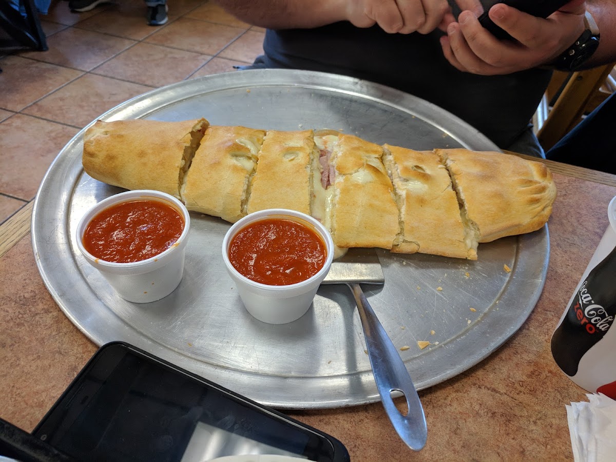 I recommend this place highly because the Stromboli is wonderful! The pizza is good but also this Mannino's has unlimited drinks unlike the other A&M restaurants in the area with charge you for refills. I recommend coming here! Just had the Stromboli again because it's my favorite here but I had them add banana peppers and it was even better!