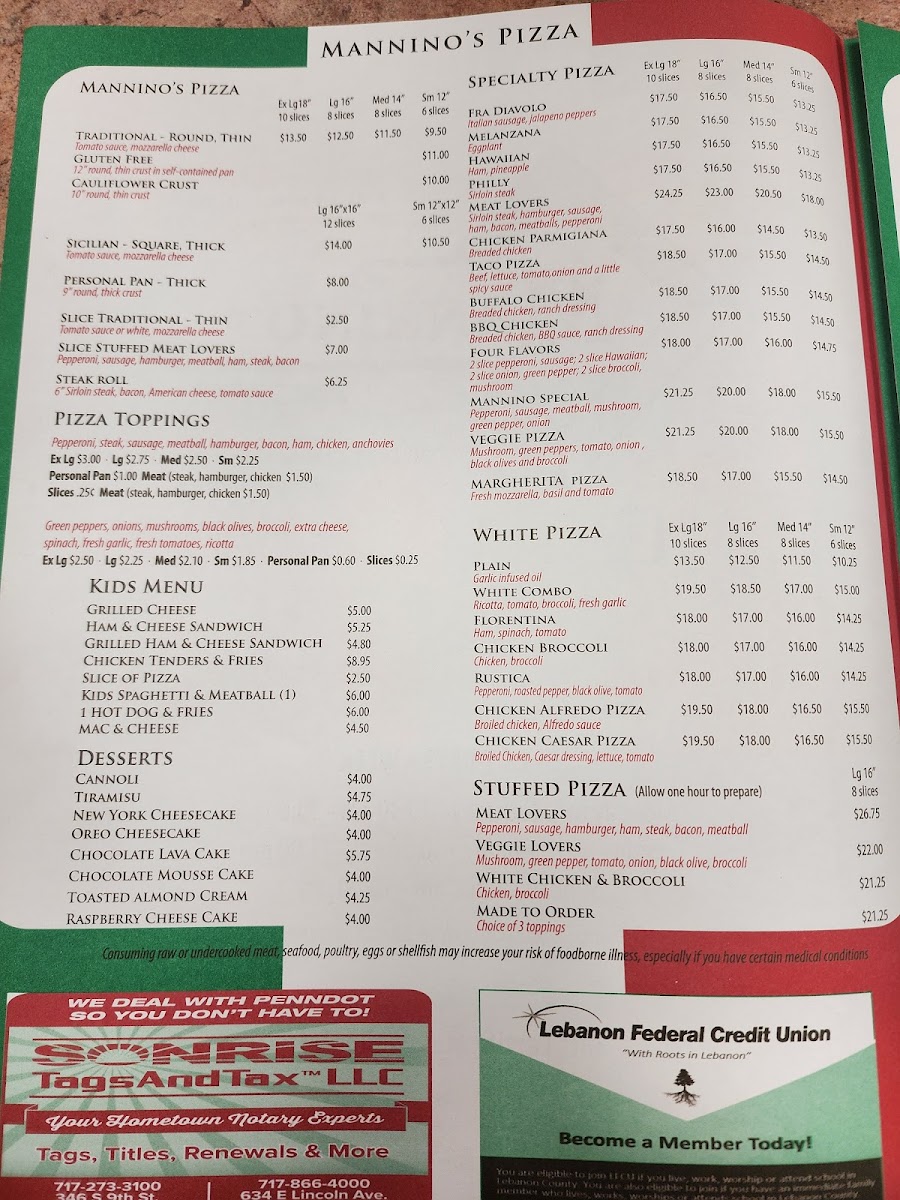 Includes spaghetti with sauce