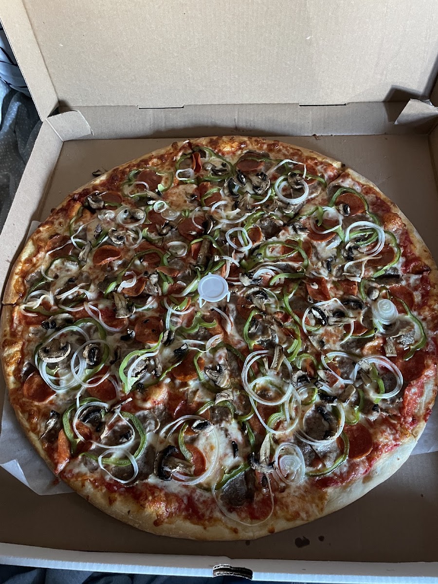 What a great local spot. This is a solid pie with some pretty delicious crust. They consistently deliver quality pizza with quality ingredients and sauce. It’s a family-owned business and you can tell there’s a lot of kindness there, between the proprietors and the staff. Super reliable, super delicious.