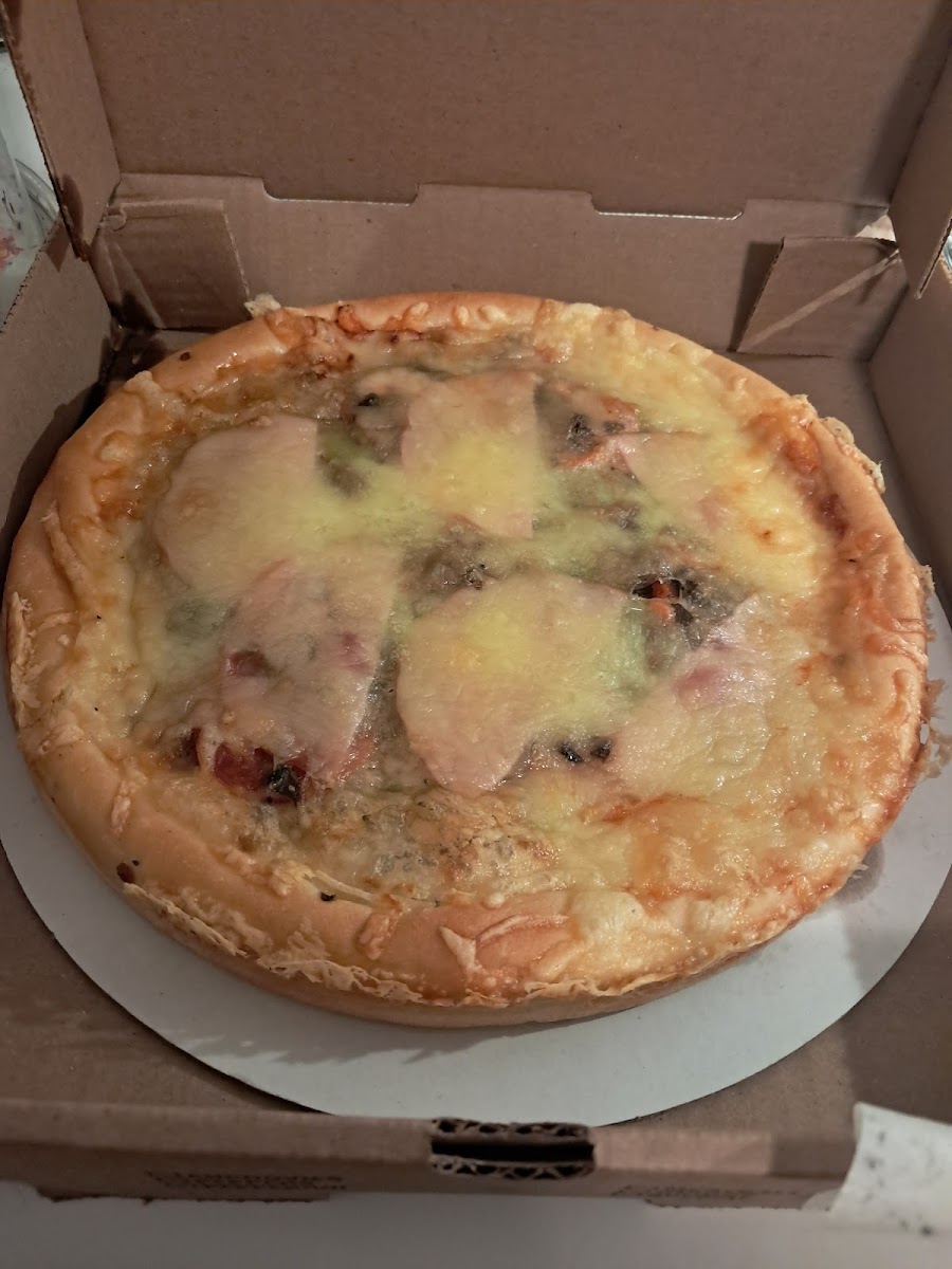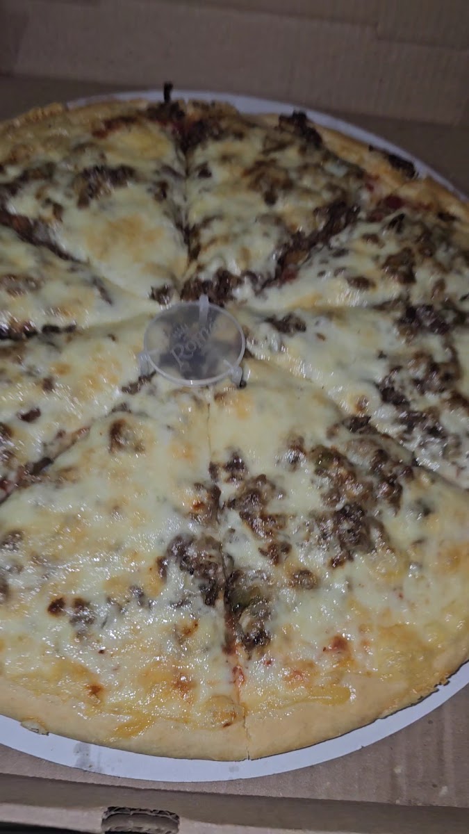 First time eating there it was so good. Let me tell you it was the cheesiest pizza I ever had they ain't afraid to pile on the cheese