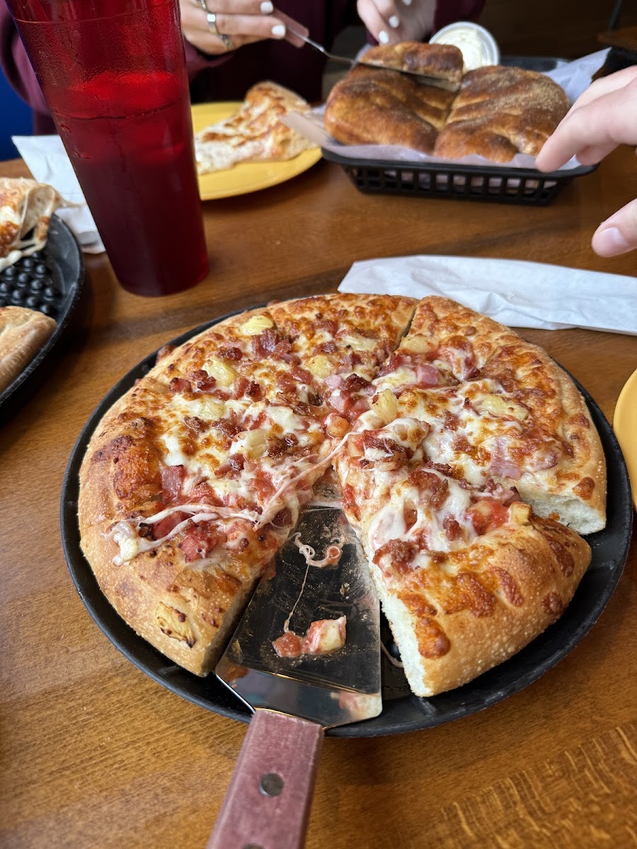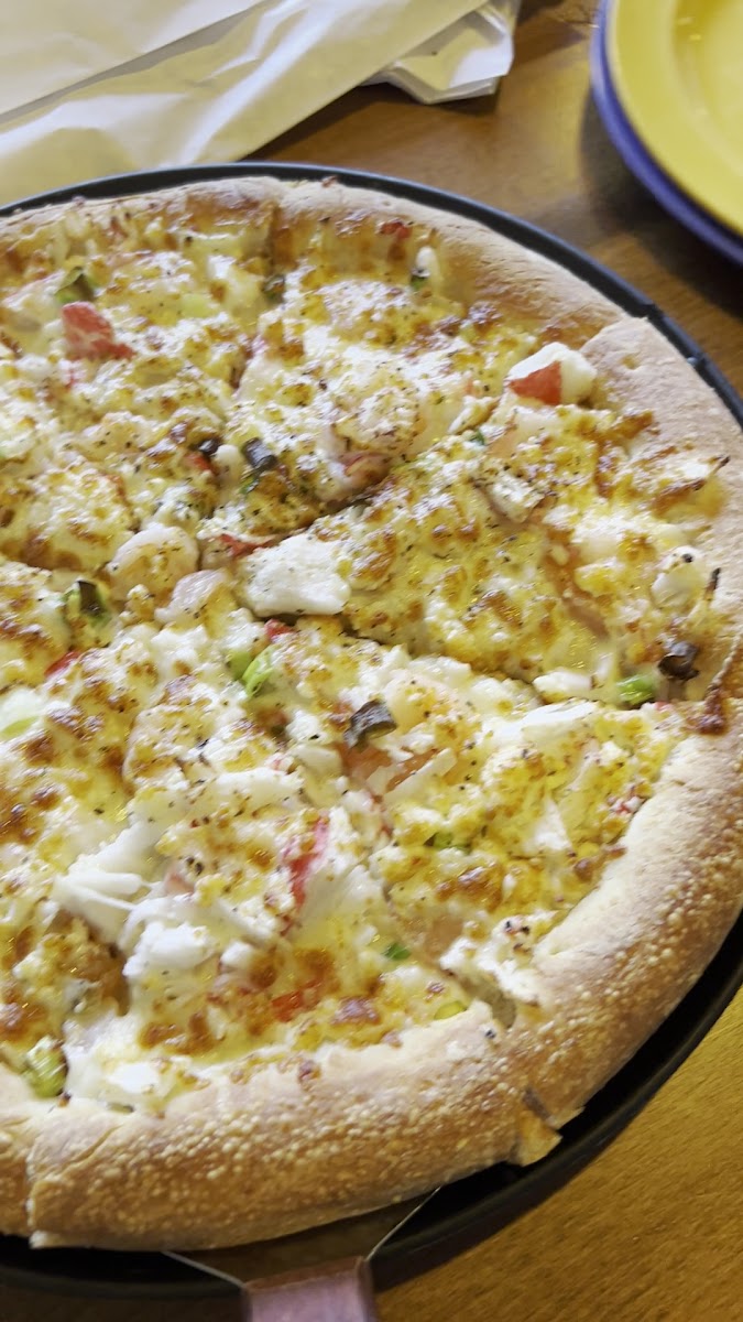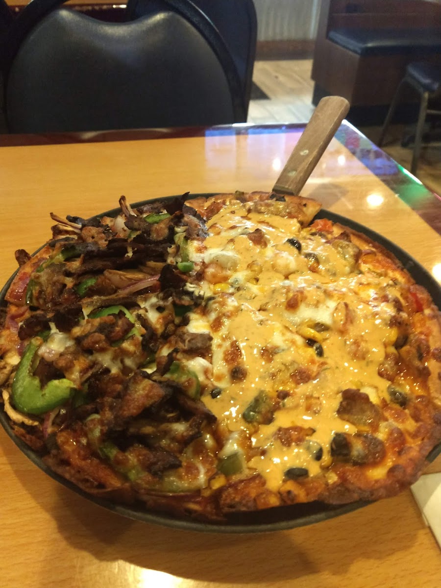 Awesome pizza. Friendly service. The hot Buffalo sauce was ! Dough was light and not greasy. Several specialty pizzas on the menu. Some unique ones as well such as the honey butter chicken. Pizza. Great prices.