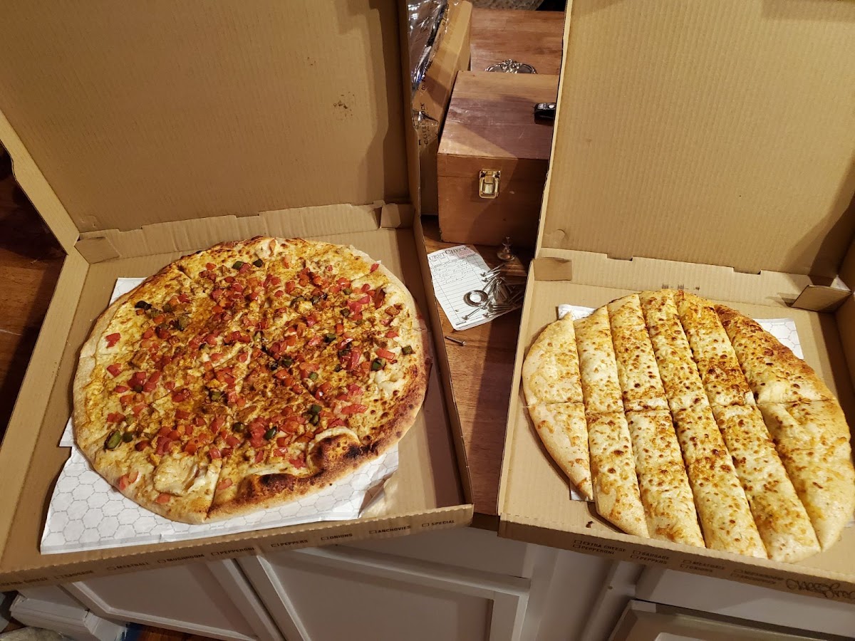 As always Pizza was delicious! I usually do the take n bake this time I had them bake it, they forgot to do that until right when I showed up no big deal food was still great and the they were very apologetic for the extra wait time! Other than that I would give 5 stars but the price for the same exact order has increased every time I’ve ordered for the last couple years.