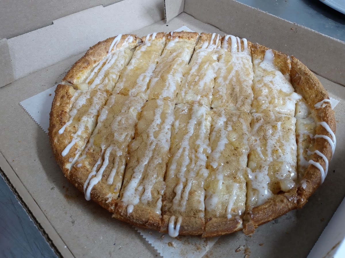 Pizza was delicious and ready on time! Love the stuffed crust. We also had the cinnamon dessert pizza, which was very good. I wish it was closer to my house!