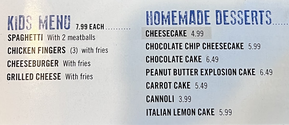 Ziti noodles served with meatballs, ricotta cheese, homemade marinara sauce, and mozzarella cheese. Served with a side salad and garlic bread.