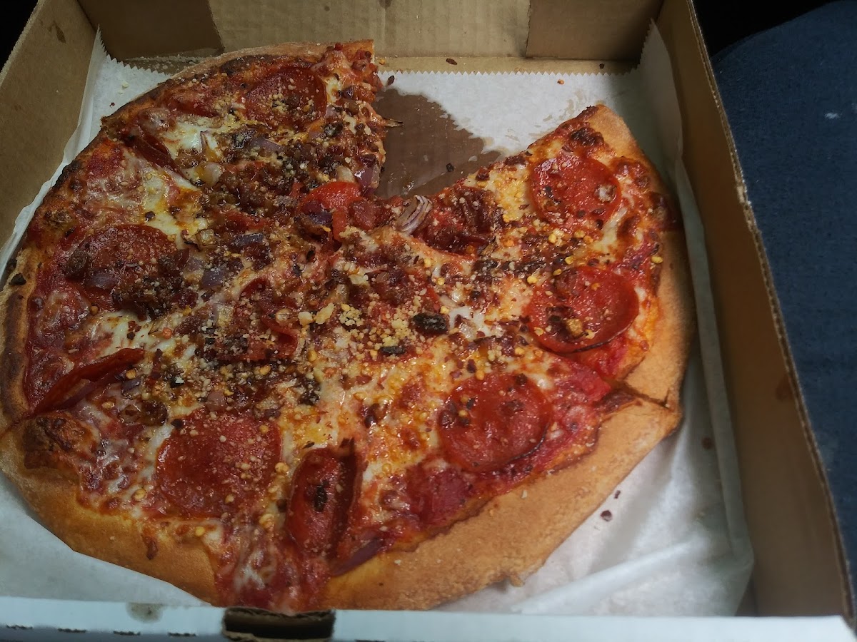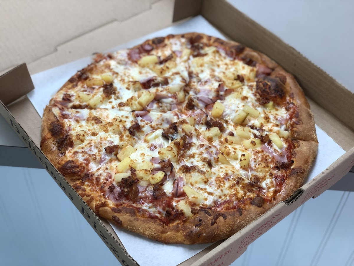 Honestly the best pizza around. Crunchy crust, non-greasy (idk how they manage that but it’s amazing), quick, and delicious. The buffalo chicken is our favorite and by far the best buffalo chicken pizza we’ve had! Don’t judge a book by its cover, this place is awesome.