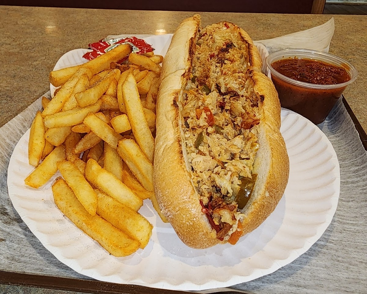 Yep, their cheesesteaks are solid Philly cheesesteaks!! Got the lunch special for 15 bucks, which got me a fat cheesesteak w sauce, a big plate of fries, and a drink. You can easily get two meals out of this special! The employees behind the counter were great! Great food + great service + great price for what you get = 5 stars!