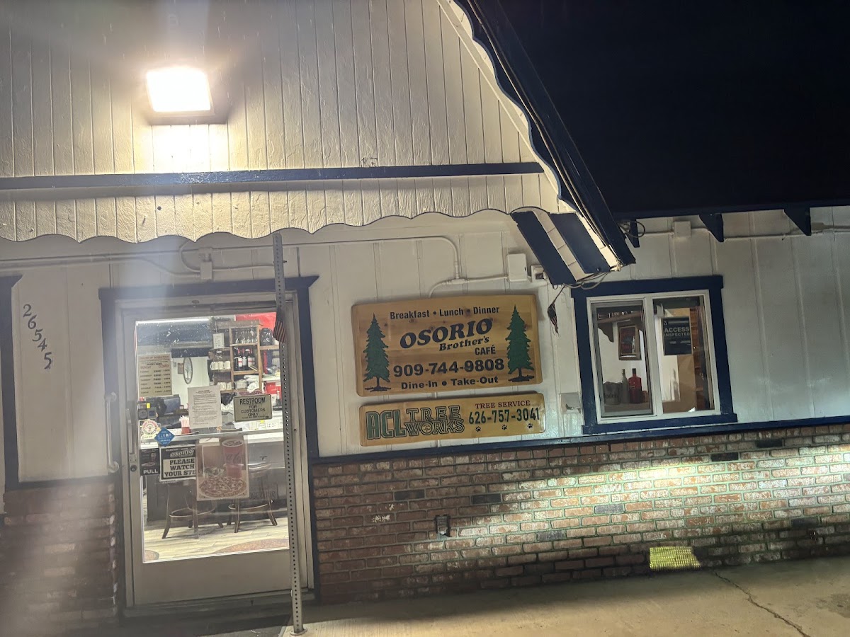 Osorio Brother's Pizza can be found at 26545 CA-18, Rimforest, CA 92378, United States. This pizza restaurant has been reviewed 111 times. Their menu includes a variety of dishes including ribs, cheeseburgers, Osorio fries topped with cheese animal style, a French toast platter, and a house salad, combining classic pizza options with other hearty dishes.