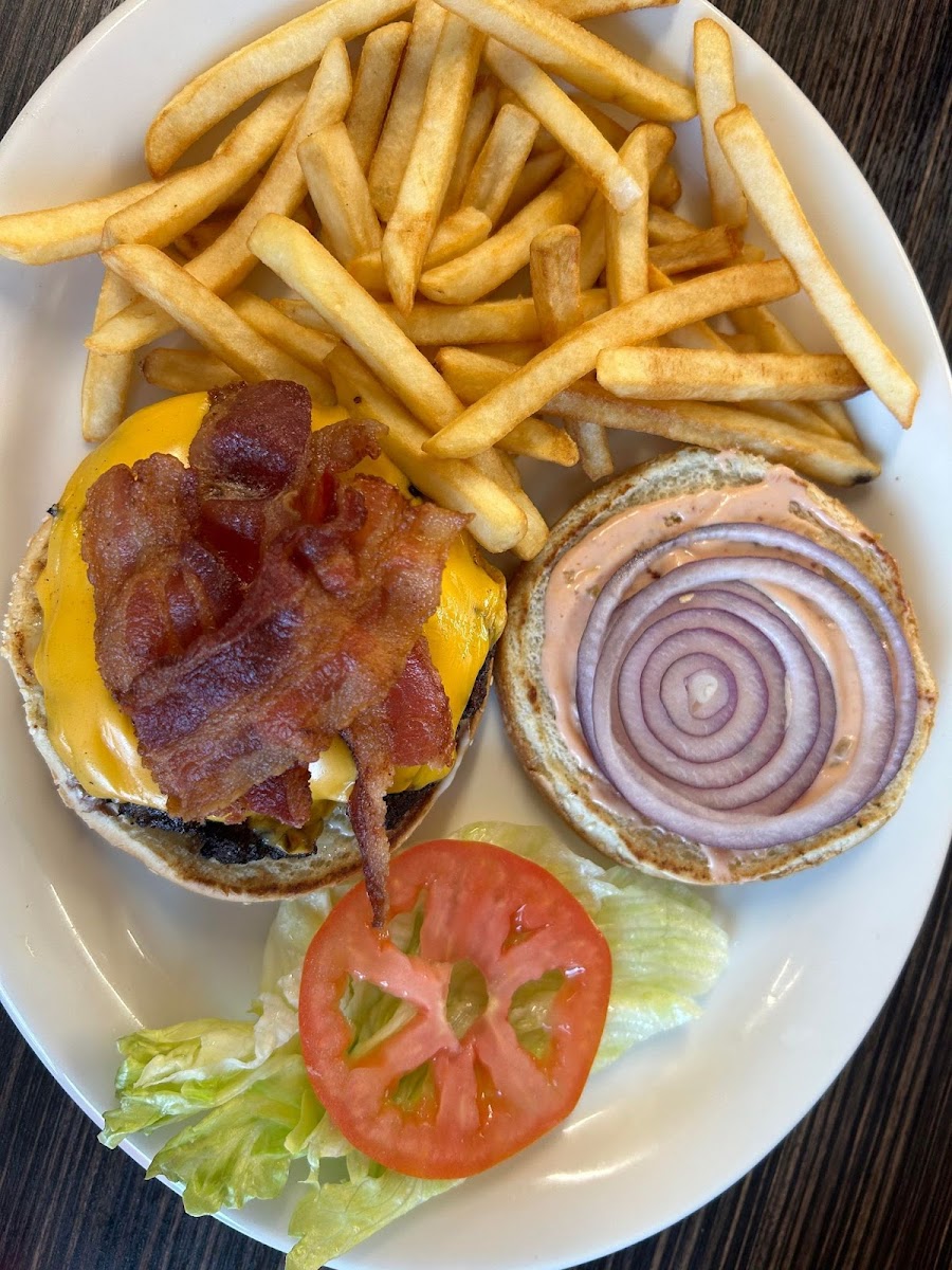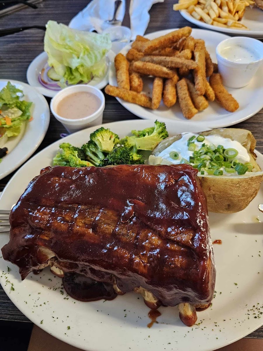 We had a wonderful meal on my wife's birthday . Zucchini Fries for appetizer Dinner Salad Half Rack BBQ Ribs Bacon Cheeseburger Update: Steaks are good, meatloaf is good too