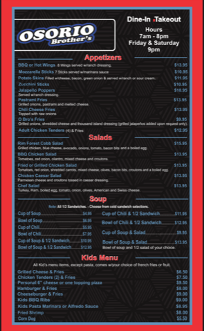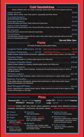 Seniors Menu