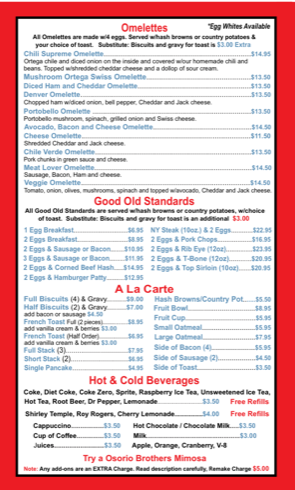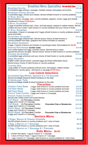 Breakfast Menu Specialties