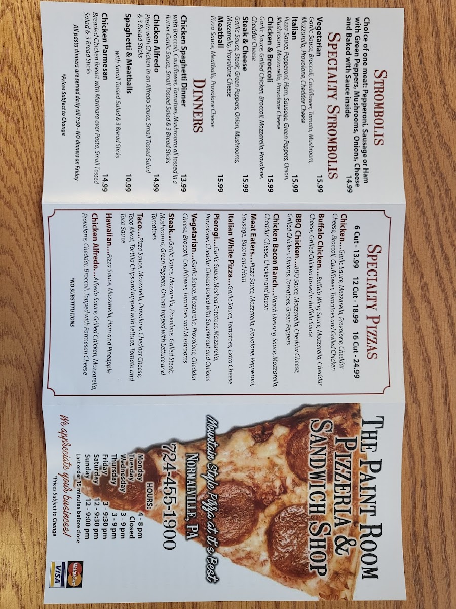 Choice of one meat: Pepperoni, Sausage or Ham with Green Peppers, Mushrooms, Onions, Cheese and Baked with Sauce inside