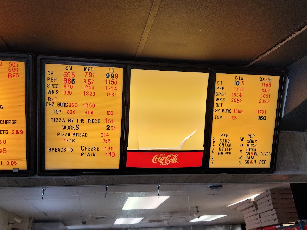 pepperoni, sausage, onions, gr pepper, ht peppers, bacon, mushrooms, ham, blk olives, gr. olives, pineapple