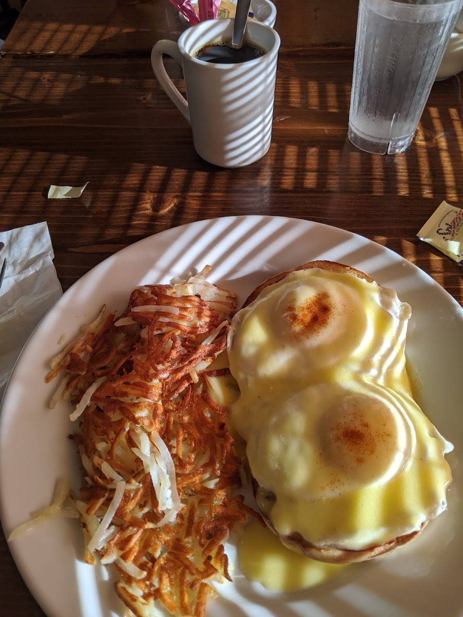Wonderful place for the prices and to support small business, wait time was not as high when in the door their had been great at getting people in and out the door! My fiancé and I received the Big engine and little engine breakfast which was just perfect portion sizes for our adventurous start to the day. Recommended for great food and excellent service!!