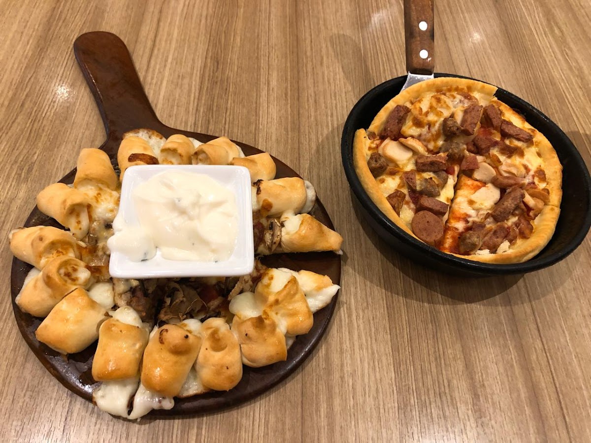 Trying pizza hut new menu. Quite interesting because they cut the pizza in square shape. The taste for me is okay. But i more prefer cheese world. But good marketing they always have seasonal menu. Everything is good. May be only need to improve a bit to fasten the service. It takes quite long time meanwhile the restaurant not crowded.