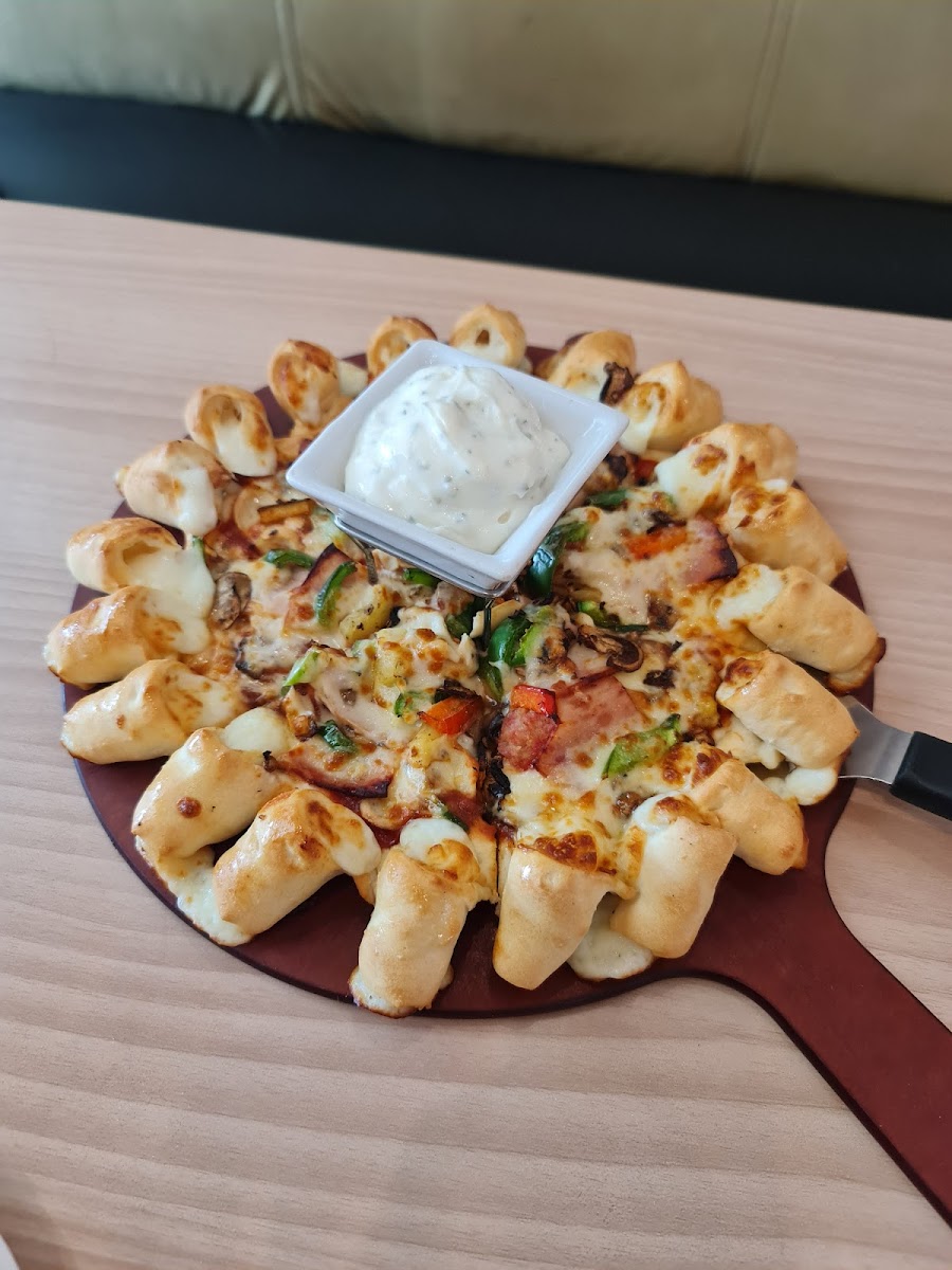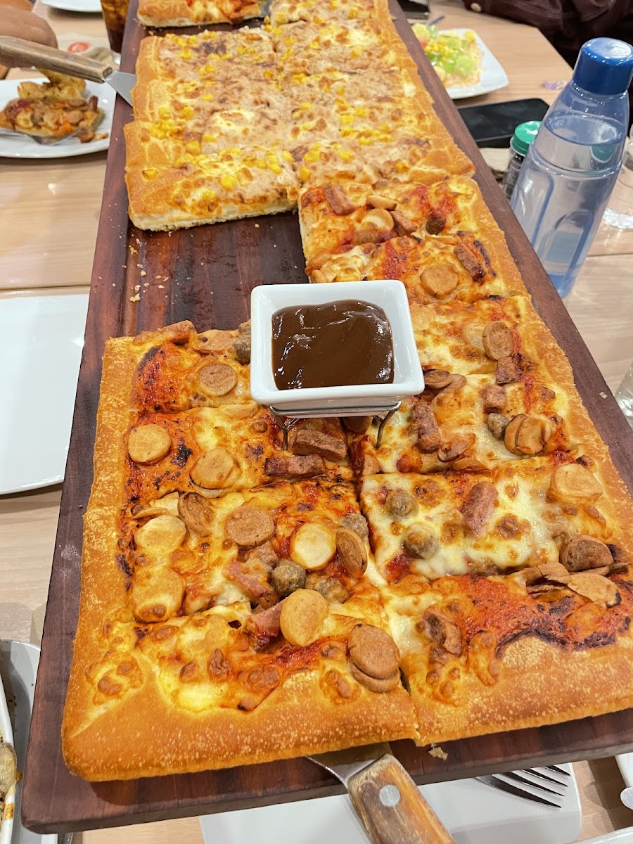 Pizza Hut Restoran - Taman Mini Central, located at Sentra Niaga Taman Mini Jl. Raya Taman Mini RT 01/01 TMII, Pintu 1 Tmii No.1, Ceger, Cipayung, East Jakarta City, Jakarta 13820, Indonesia, serves pizza and related dishes. It has received 3485 reviews and features popular dishes such as Creamy Beef Classic Fettuccine & Monsta Pizza, Take Away options, Puff Pastry Mushroom Cream Soup, Pizza Tuna Melt, and Pizza with Sosis. Peak wait times of up to 15 minutes can be expected on Mondays from 4:00 PM to 9:30 PM and Sundays from 5:30 PM to 9:00 PM, well-known busy periods for the venue.