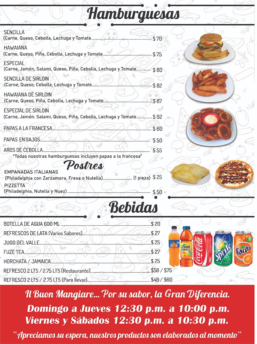 Pizzeria Il Buon Mangiare El Tesoro Menu