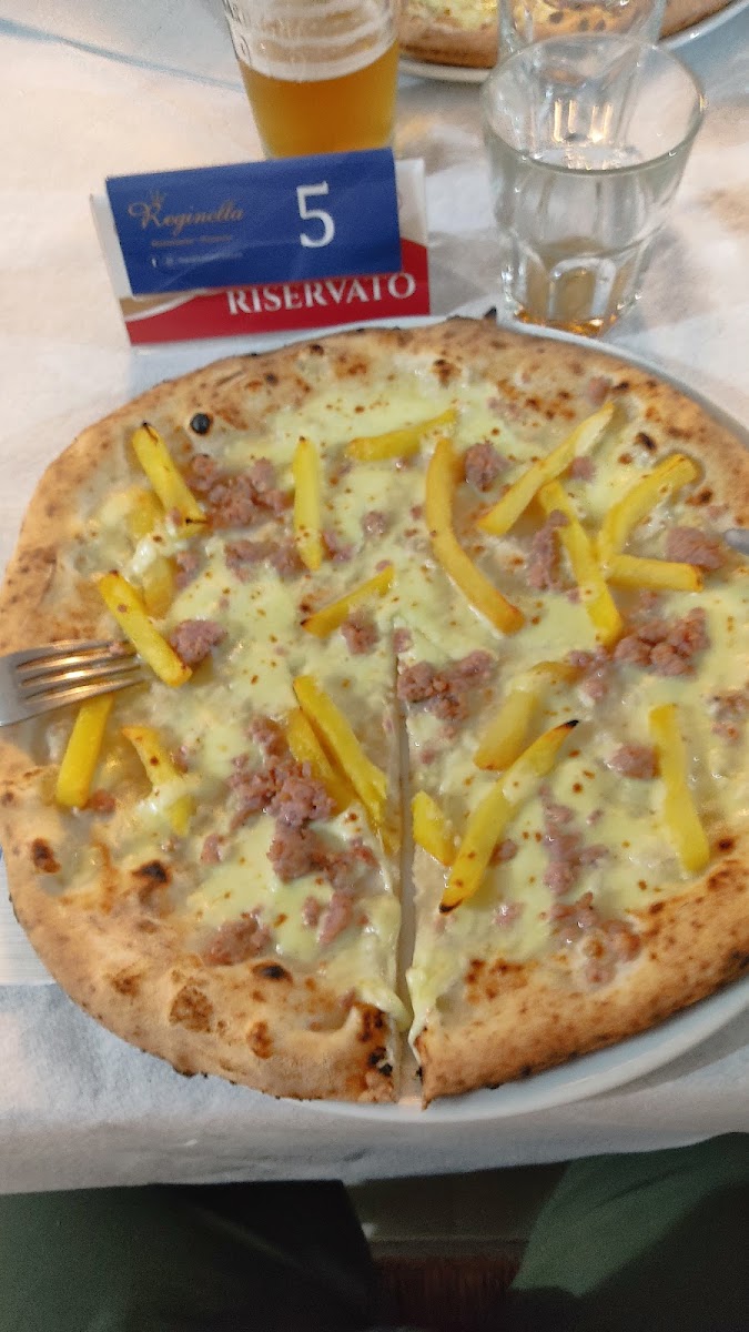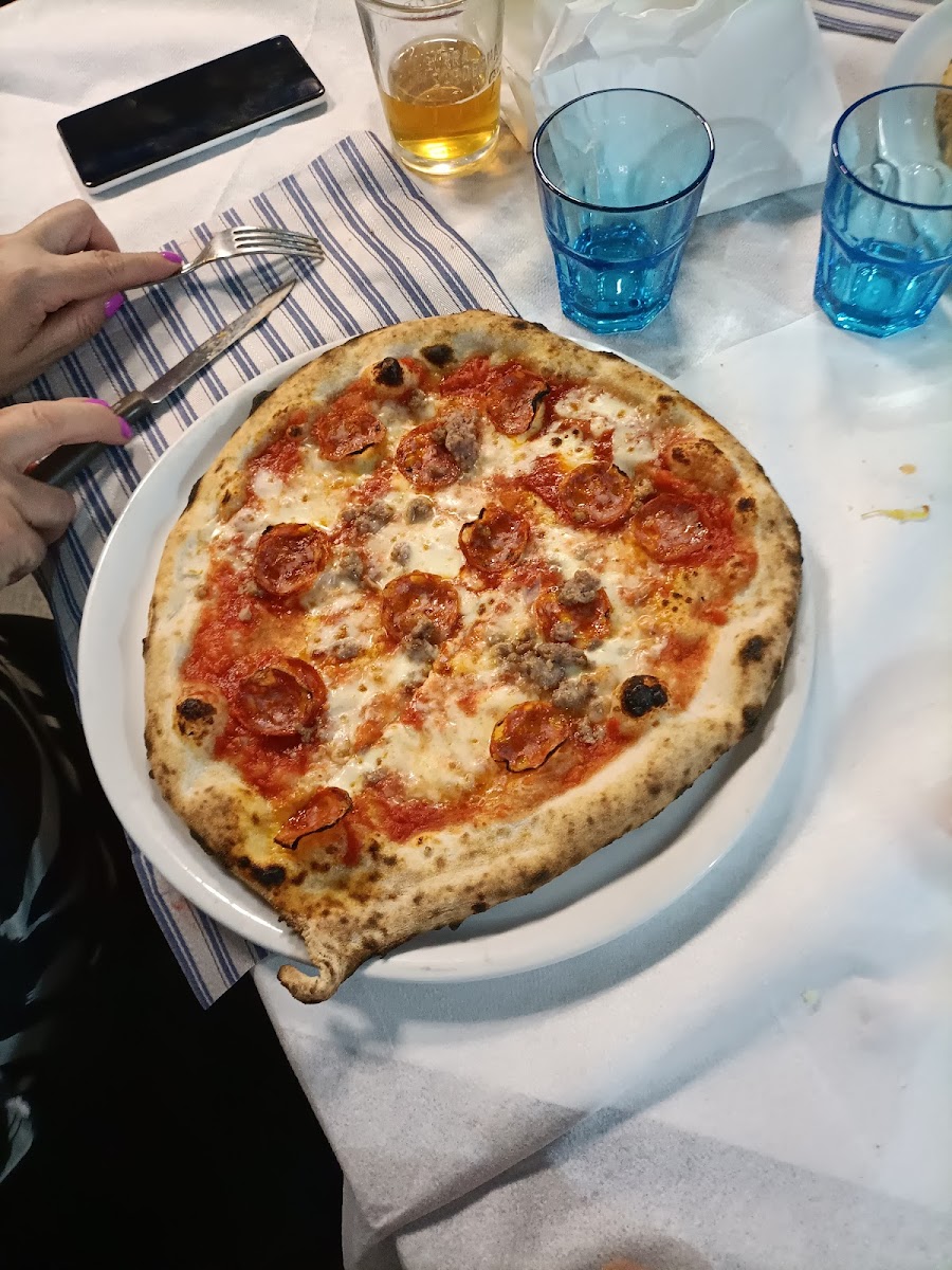 Impasto pizza un po gommoso per i miei gusti avrei preferito una pizza più croccante, la pizza era di buon gusto, leggera e ben condita, fatta con forno a legna. Personale professionale gentile e veloce. Locale da migliorare qualche aspetto ma si presenta pulito e ordinato. Una cosa che ho notato, che nel bagno c'era un buon odore di pulito, cosa rara. Sorpreso dai prezzi, non gonfiati come tanti altri locali.