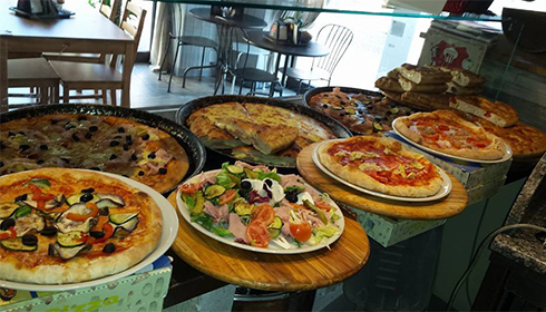 Una pizza al trancio buona, bella soffice e digeribile, il servizio è veloce e preciso, l ambiente è giovanile. Al mattino ha un buon assortimento di brioches che non guasta. Gode di una bella posizione e in primavera /estate si sta comodi fuori nella piazzetta a godersi dal caffè alla cena. Il posto è bello pulito e il personale cordiale.